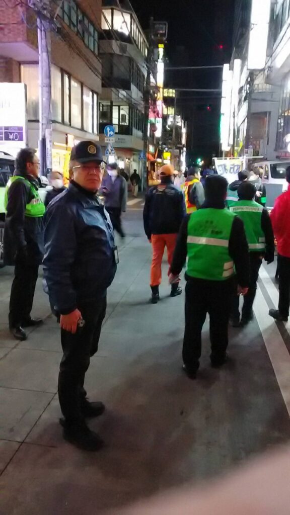 パトロール 同日、新橋駅周辺での防犯パトロールも実施しました。地域の安全と秩序を維持するためのこの活動は、市民の皆様に安心して毎日を過ごしていただくために非常に重要です。チームは、不審な活動を監視し、必要に応じて迅速に対応することで、地域の安全に貢献しました。