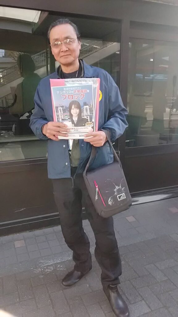 1月21日、荒木総本部局長が、警視庁広報発行の防犯対策アプリ「デジポリス」のチラシ100枚を、ポスト投函により配布する啓発活動を行いました。