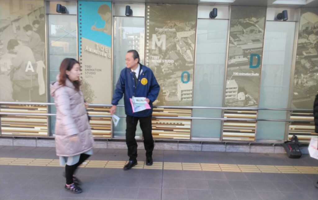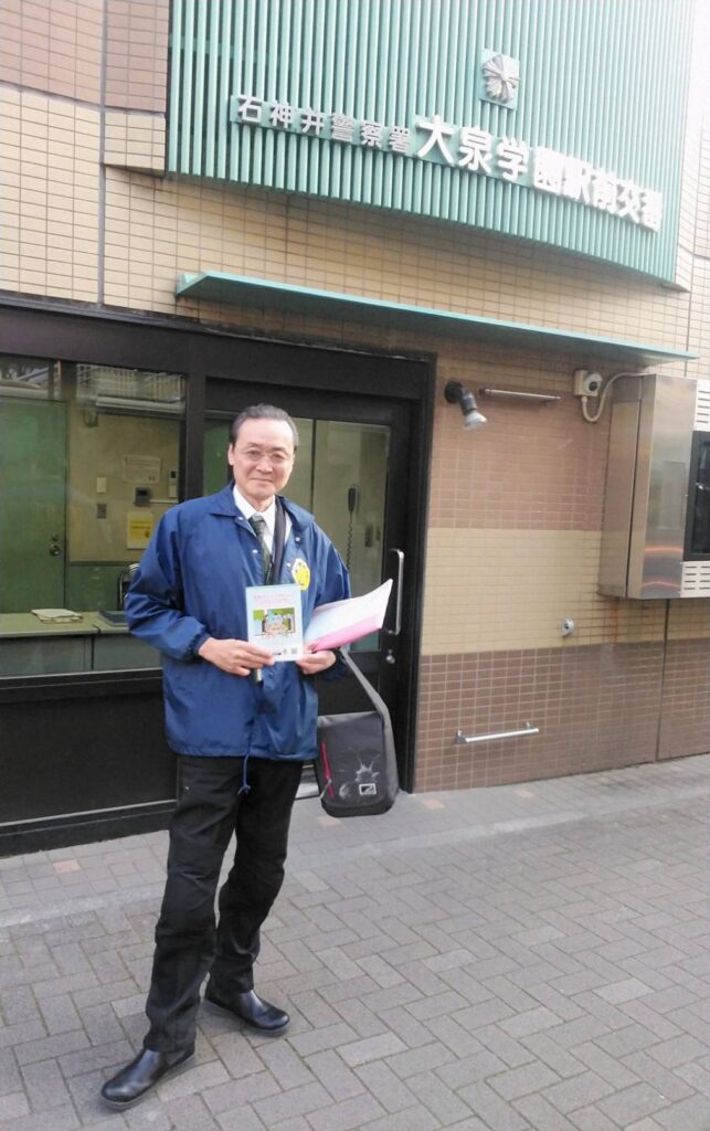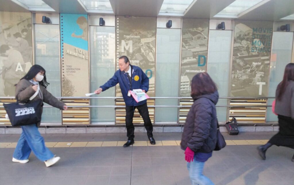 2月15日、荒木総本部局長が警視庁発行の防犯チラシ200部の配布を実施いたしました。