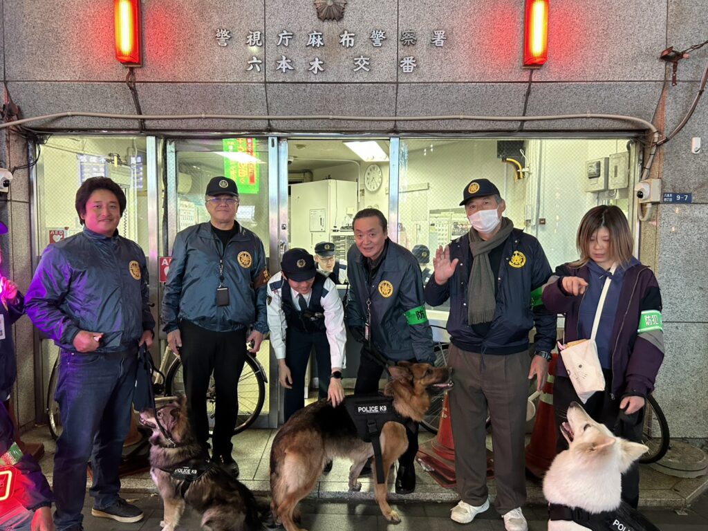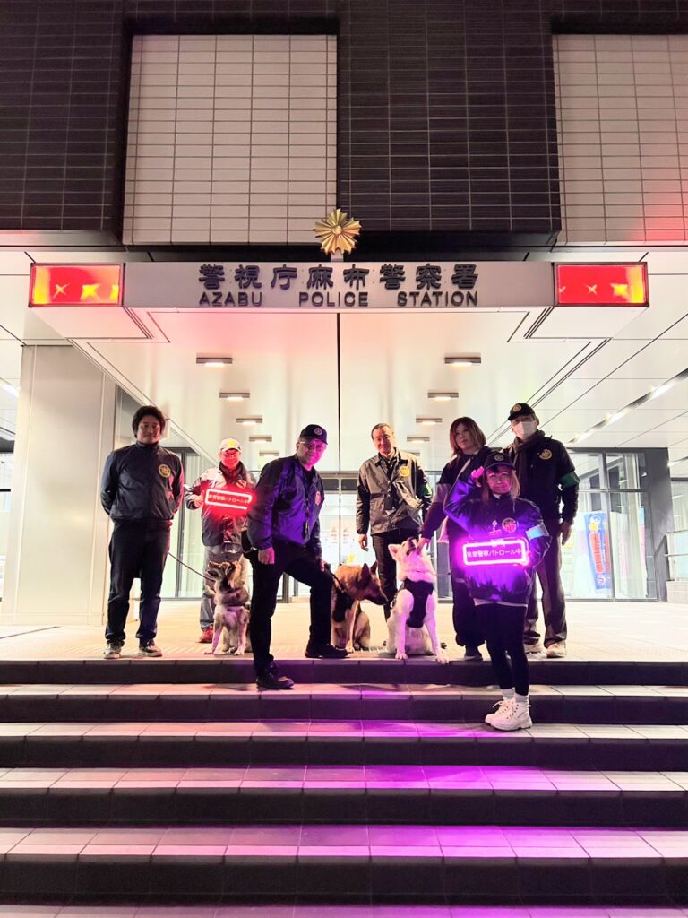 3月21日(土)、六本木におきまして、荒木局長をはじめ7名および元警察犬3頭により、防犯パトロールを実施いたしました。